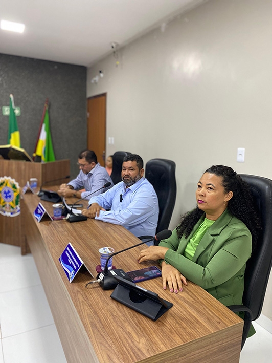 A sessão contou com a presença da Secretária Municipal de Educação, Maria das Dores (Dorinha), que emocionou vereadores, servidores e público ao recordar sua participação na fundação da Câmara Municipal em 1997, época em que a Casa funcionava em uma estrutura simples e modesta.